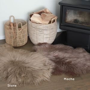 - Stone & Mocha: These sheepskins are dyed to have an even colour